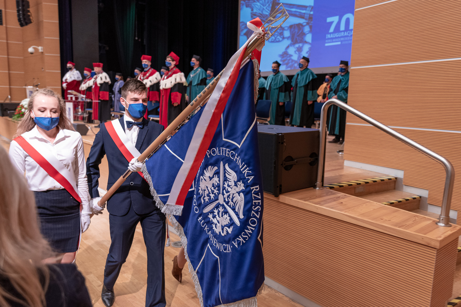 Ze względu na sytuację epidemiczną uroczystość inaugurująca jubileuszowy 70. rok akademicki na naszej uczelni odbyła się w warunkach zaostrzonego reżimu sanitarnego z zachowaniem wszelkich środków ostrożności. Pracownicy, studenci i sympatycy naszej uczelni mogli w niej uczestniczyć w relacji na żywo transmitowanej na kanale YouTube, uczelnianym Facebooku i na antenie Akademickiego Radia i Telewizji Centrum.