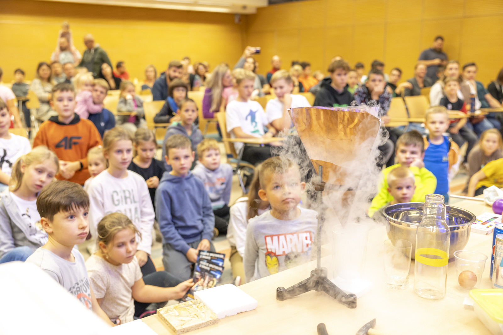 Liczną widownię zgromadziły pokazy chemiczne prezentowane m.in. przez Koło Naukowe Esprit, pokazy fizyczne realizowane przez Koło Naukowe FOTON, a także pokaz wysokich napięć zrealizowany przez Studenckie Koło Naukowe MegaVolt. Wyjątkowy spektakl popularno-naukowy „Sztuka fizyki, fizyka sztuki” poprowadzili Małgorzata Wilczak i Paweł Pasterz.
