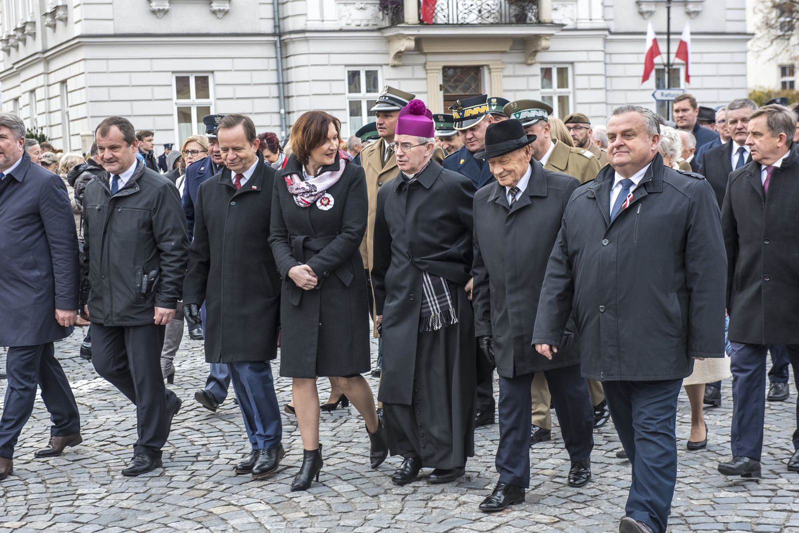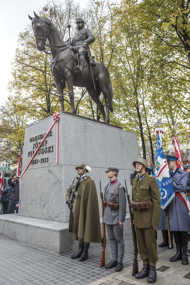 Następnie przedstawiciele władz wojewódzkich, reprezentacje uczelni wyższych, parlamentarzyści, kombatanci, żołnierze, mieszkańcy Rzeszowa i Podkarpacia zgromadzili się na Placu Wolności, gdzie kontynuowano uroczystość. Politechnikę Rzeszowską reprezentowali dr hab. inż. Grzegorz Masłowski, prof. PRz, Prorektor ds. kształcenia oraz mgr Andrzej Sowa, Kanclerz. Tam odbyło się złożenie meldunku dowódcy garnizonu Rzeszów i odśpiewano hymn narodowy. Kulminacyjnym punktem obchodów było odsłonięcie pomnika Marszałka Józefa Piłsudskiego.